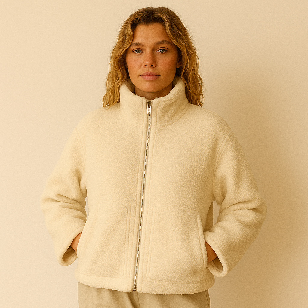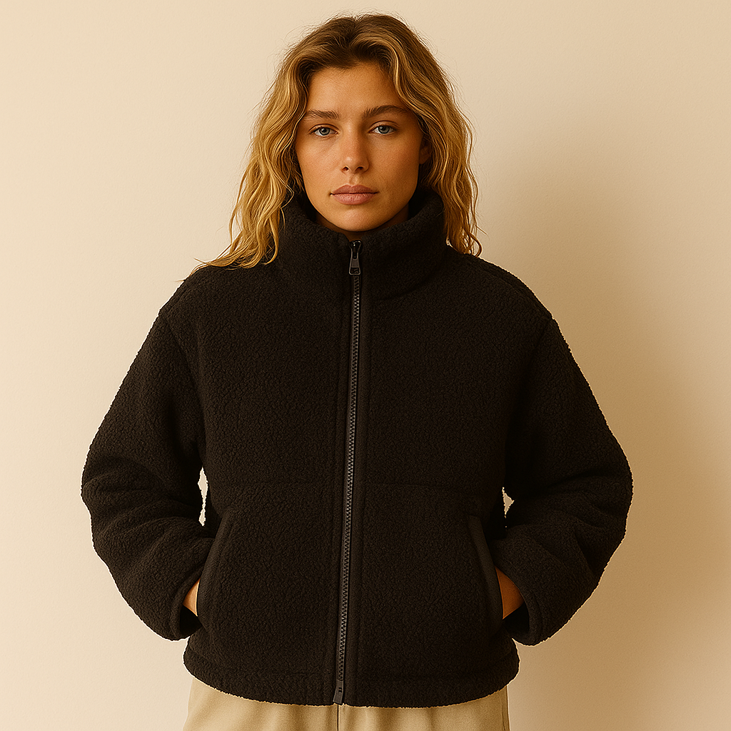 Realizzata in morbido pile di alta qualità, mantiene la temperatura ideale senza appesantire. Le tasche laterali pratiche e la chiusura a doppia zip aggiungono comodità, mentre la vestibilità ampia consente libertà di movimento in ogni momento. È perfetta per le giornate fredde in città, per viaggiare o per aggiungere un tocco cozy ai tuoi outfit quotidiani.